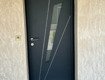 Installation d’une superbe porte d’entrée K-LINE, La Fenêtre Lumière, modèle FUSEAU de la collection Perspective. Dotée d’un ouvrant monobloc isolant de 72 mm, cette porte en aluminium offre une excellente isolation thermique, idéale pour allier confort et performance. Design moderne et épuré : – Jonc alu poli brillant côté extérieur – Motif décoratif usiné côté…