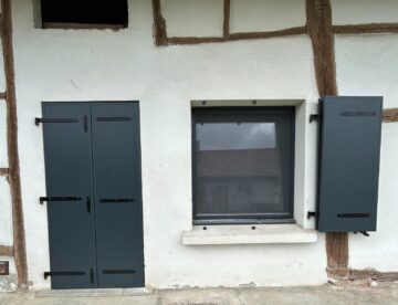 Rénovation complète de cette maison Nous sommes fiers de vous présenter cette rénovation où nous avons installé des menuiseries PVC plaxées brun chocolat RAL 8017, offrant à la fois élégance et performance énergétique. Pour compléter cette transformation, des volets battants en bois de coloris vert réséda RAL 6011 ont été posés, apportant une touche chaleureuse…