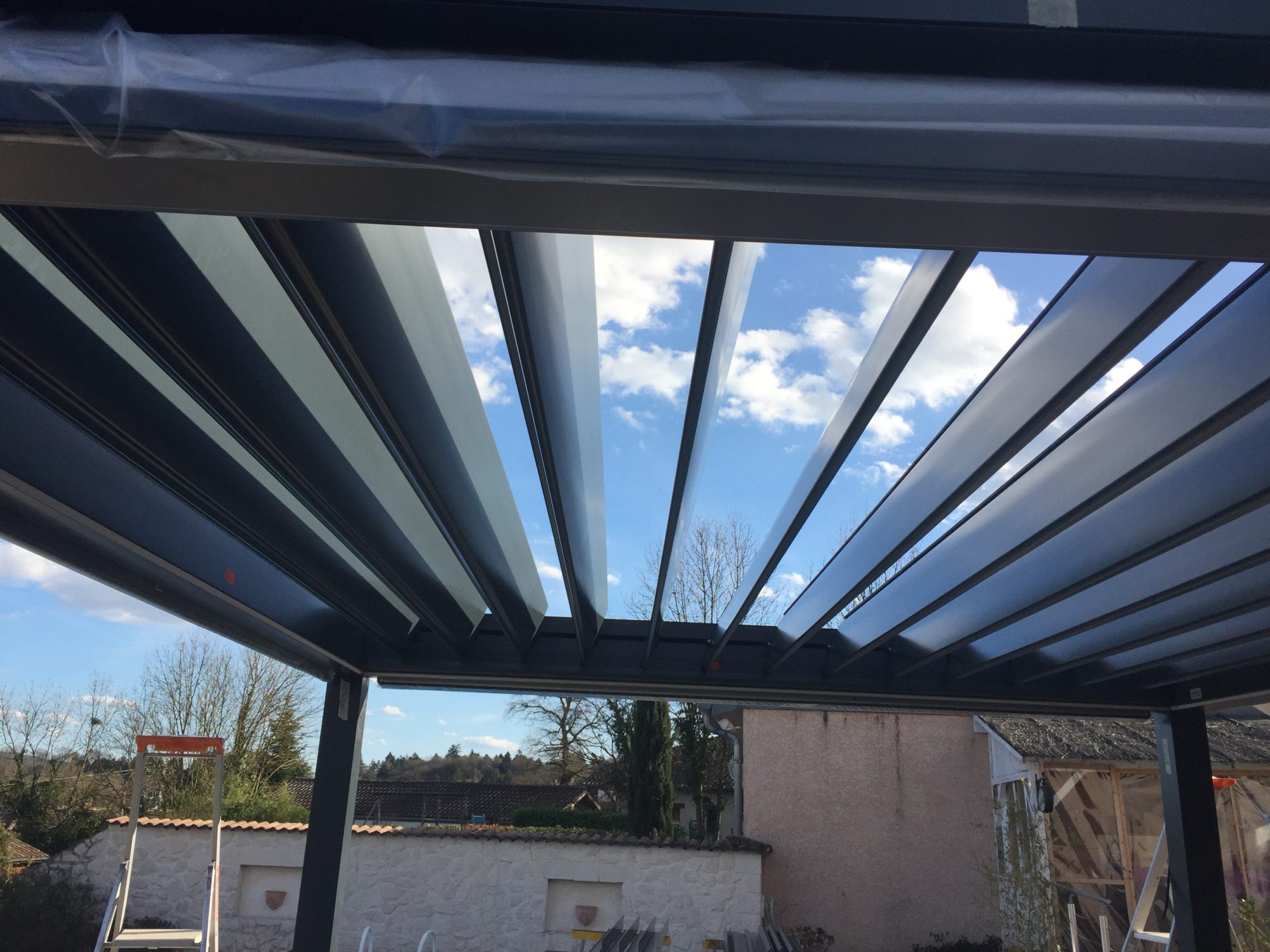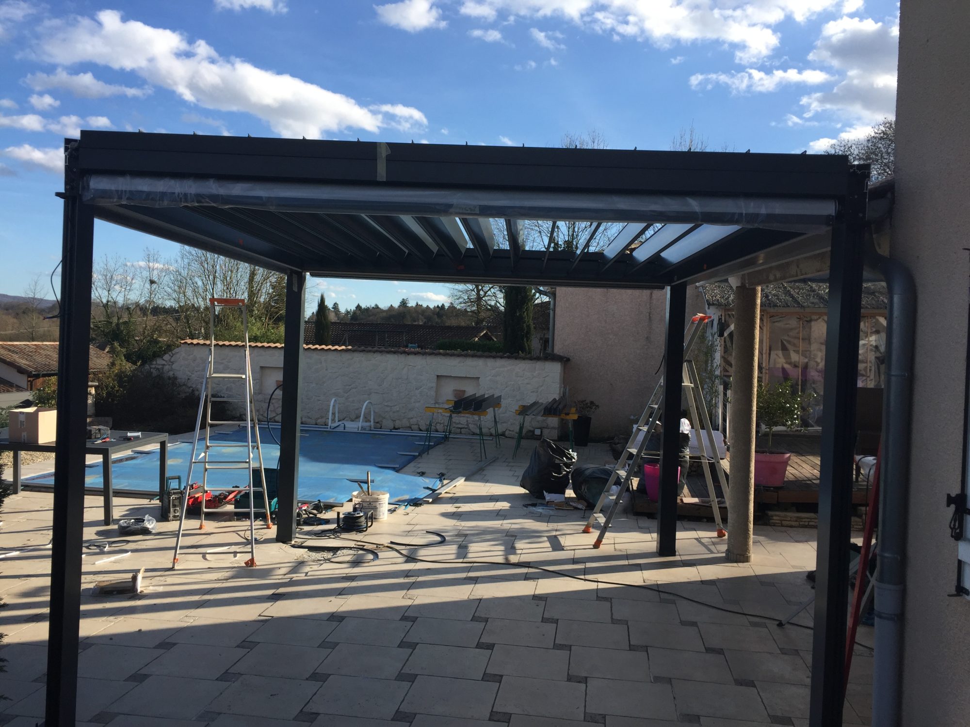 La pergola bio-climatique est la solution la plus aboutie pour compléter votre espace détente avec ses lames orientables et ses stores verticaux.