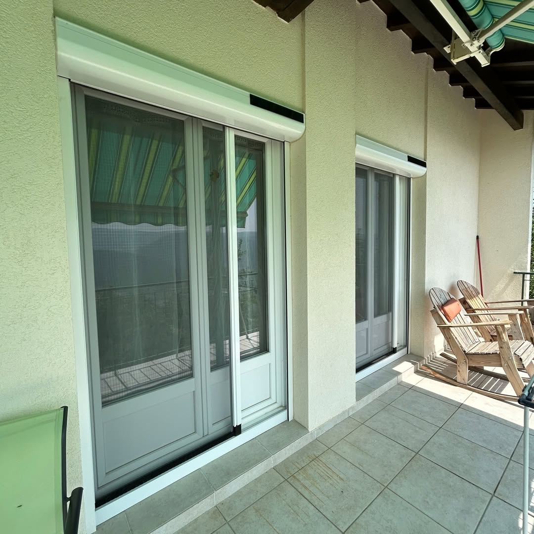 Pour un confort optimal, notre client a choisi un volet roulant solaire associé à une moustiquaire enroulable latérale.